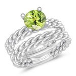 This amazing Peridot Solitaire Engagement Ring and Plain Wedding Band Set displays an AA quality Peridot prong set in 14K White Gold. Approximate Gemstone Weight: 1.22 Carats. An extraordinary matching ring set radiating style, from our Rope Collections.,METAL:14K Gold,ACTUAL METAL:14K White Gold,RHODIUM:Yes,GEMSTONE:Peridot,SHAPE:Round,AVERAGE COLOR:Medium Green,AVERAGE QUALITY:AA,MINIMUM CARAT TOTAL WEIGHT:1.22,GEMSTONE DIMENSIONS:6.5 mm,SETTING STYLE:Prong Setting,NUMBER OF STONES:1,COLOR:Green,GENDER:Womens,PRODUCT TYPE:Matching Ring Set,MATERIAL:Gemstone